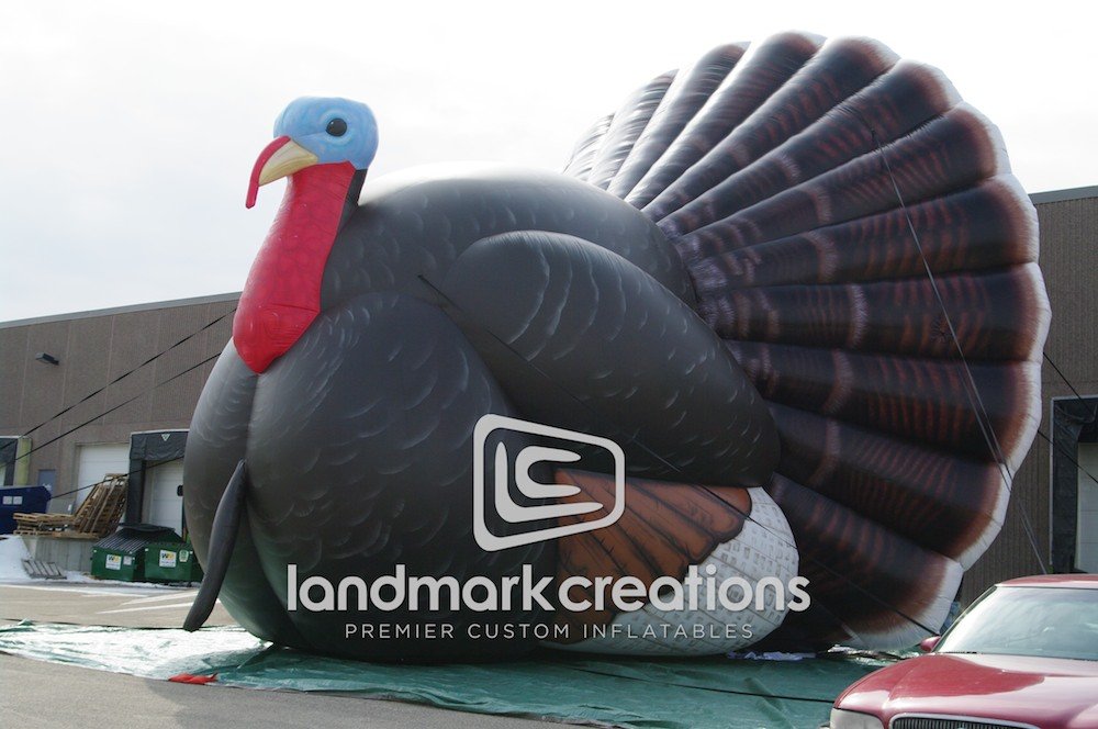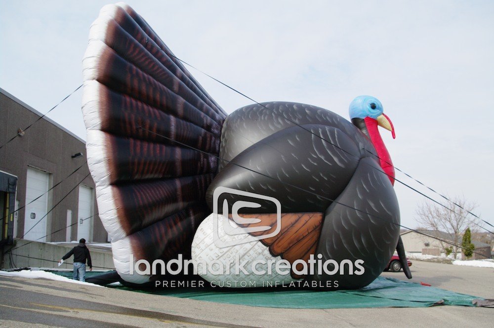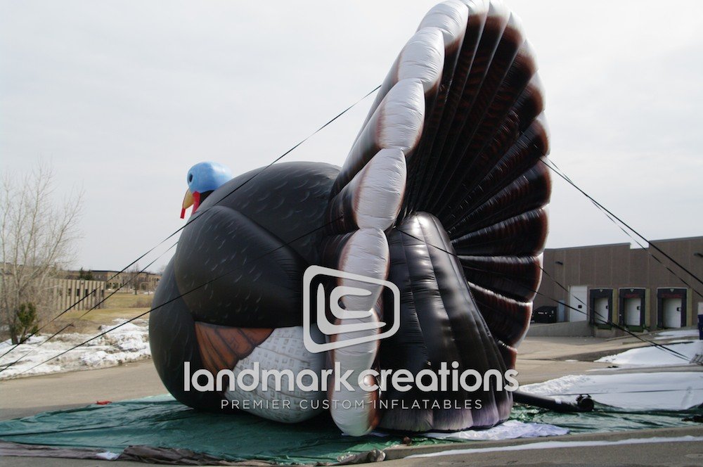 Cabela's in Plano, TX featured this giant inflatable turkey during their grand opening celebration. Inflated near a freeway it attracted lots of attention and increased foot traffic to the new retail location.