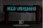 This inflatable wood-grain stylized Camp Superdope! inflatable complete with color-changing LED light inserts sets the stage for Matoma & Two Friends’ tour.