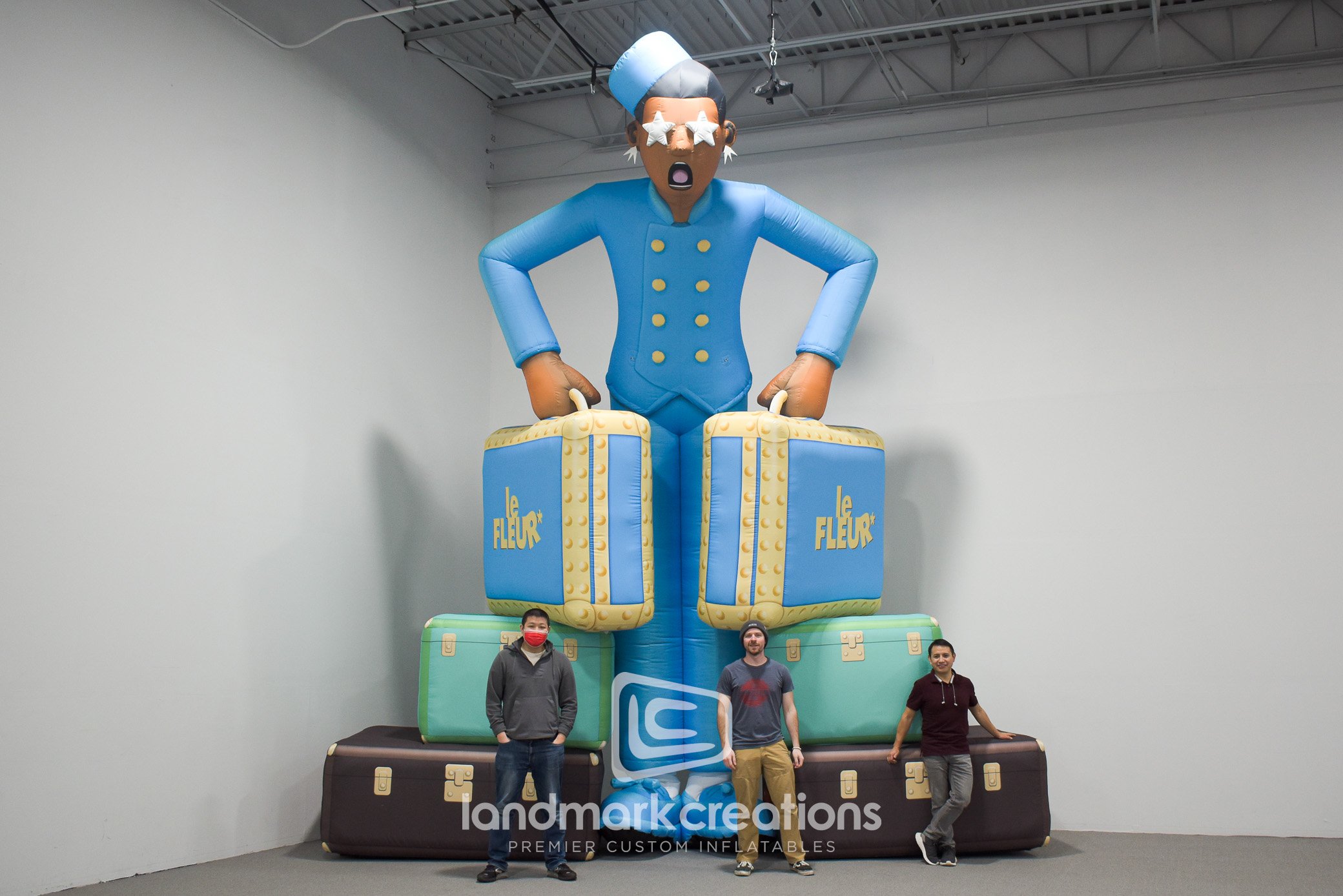 Music industry inflatables aren't just for the stage; imaginative designs and shapes can be used offstage in arena spaces and outside the venue to extend an artist's brand and connect with concert goers . This inflatable "Bellboy" for Tyler the Creator served as an inviting backdrop for fans seeking the perfect photo opportunity. Its impressive size and eye-catching design create a visually stunning setting, allowing fans to capture their experience at the concert for themselves and to share with friends on social media.