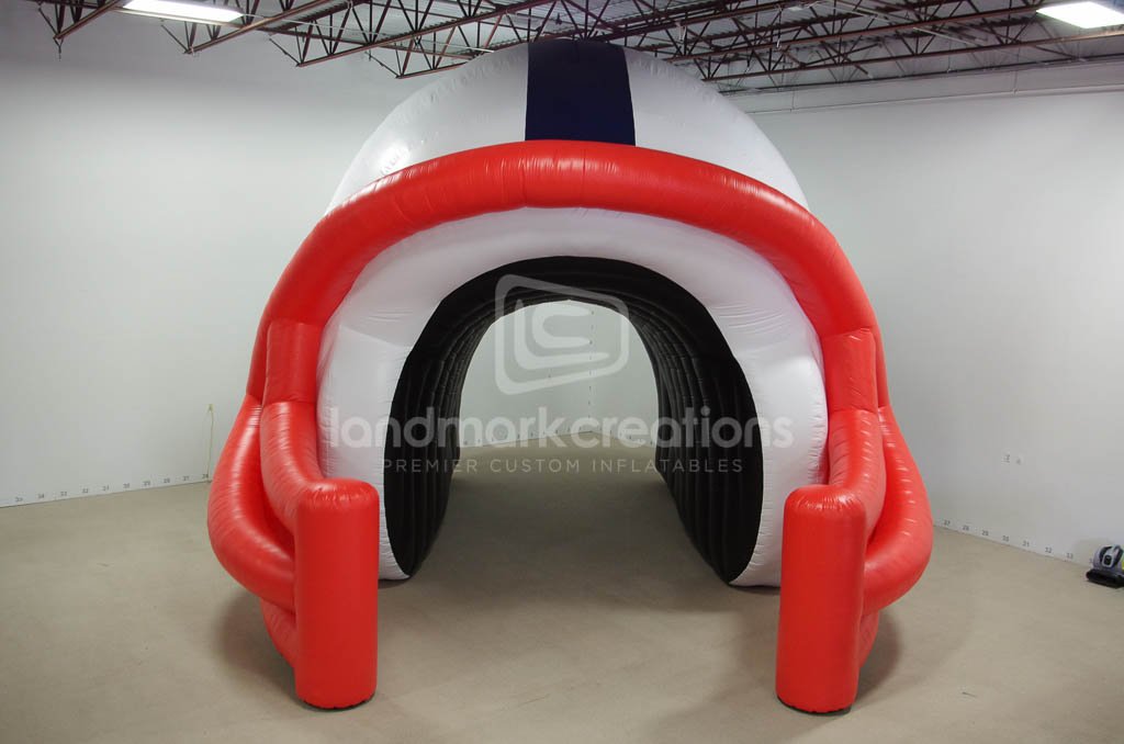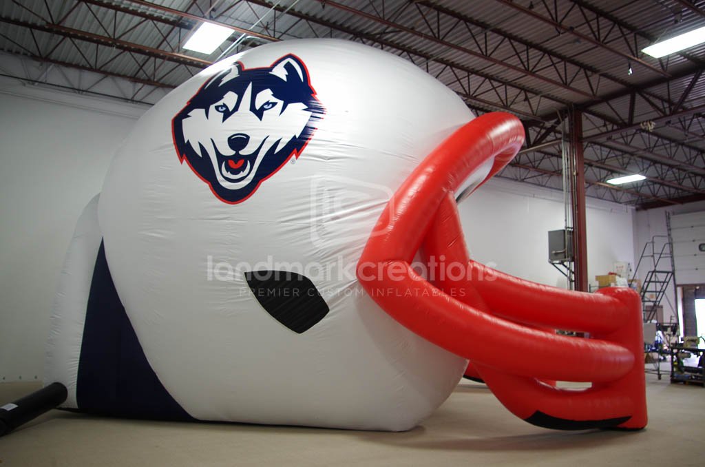 Uniform branding is key to keeping fans engaged. UCONN created a new inflatable helmet tunnel to showcase their team's pride with this new helmet design.