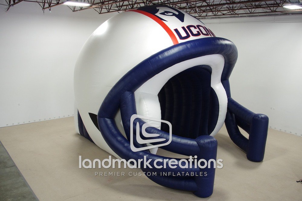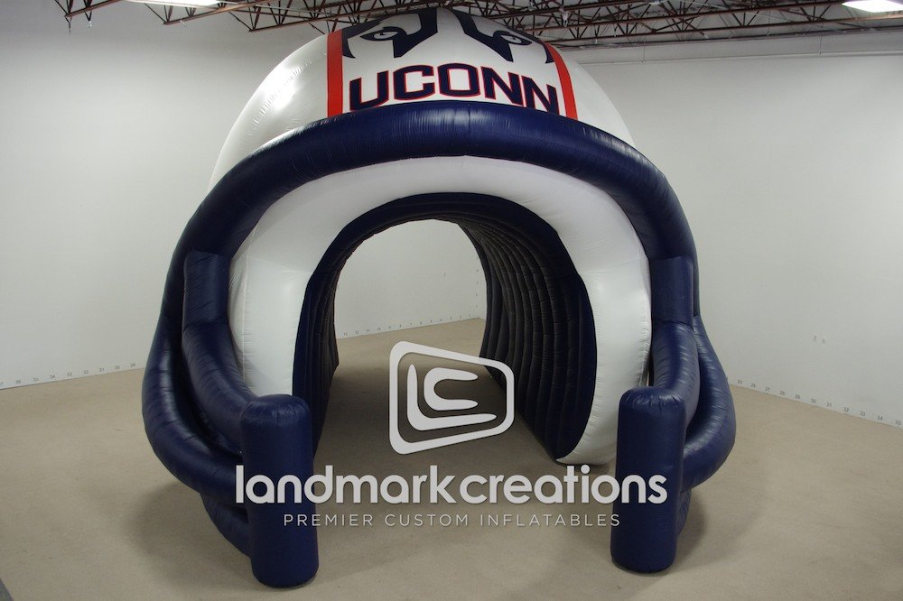 The UCONN Huskies turned their new helmets into a massive, custom inflatable football helmet tunnel. UCONN football players erupted onto the field during home games through the tunnel and caused an uproar from fans in the stands!