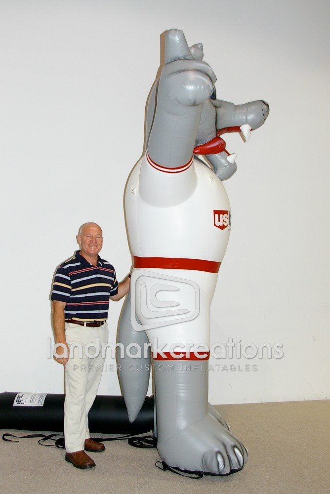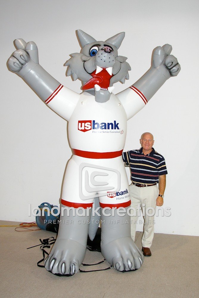 Looking for a way to connect with crowds at sporting event sponsorships? Create an inflatable mascot like USBank's inflatable wolf mascot.