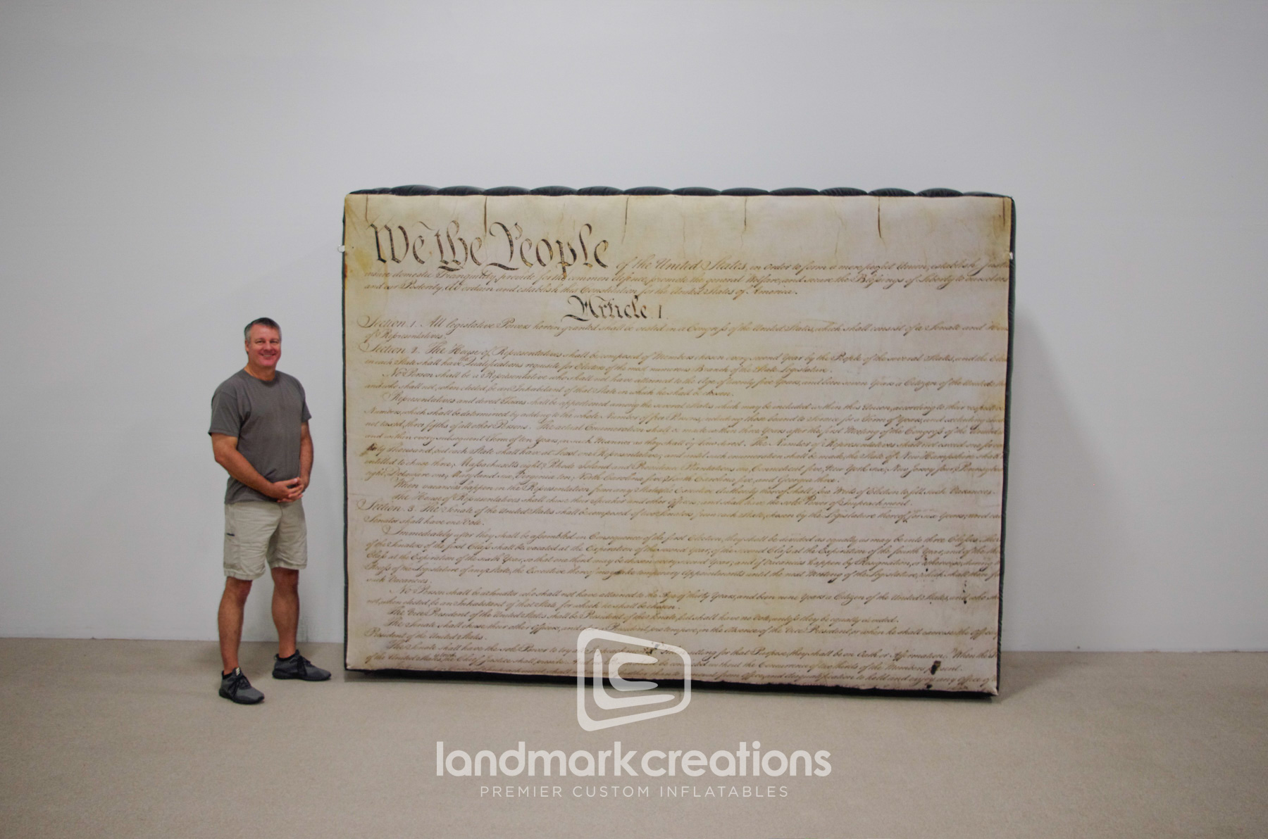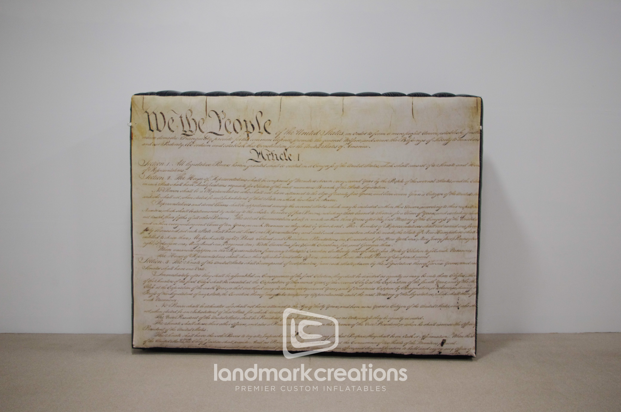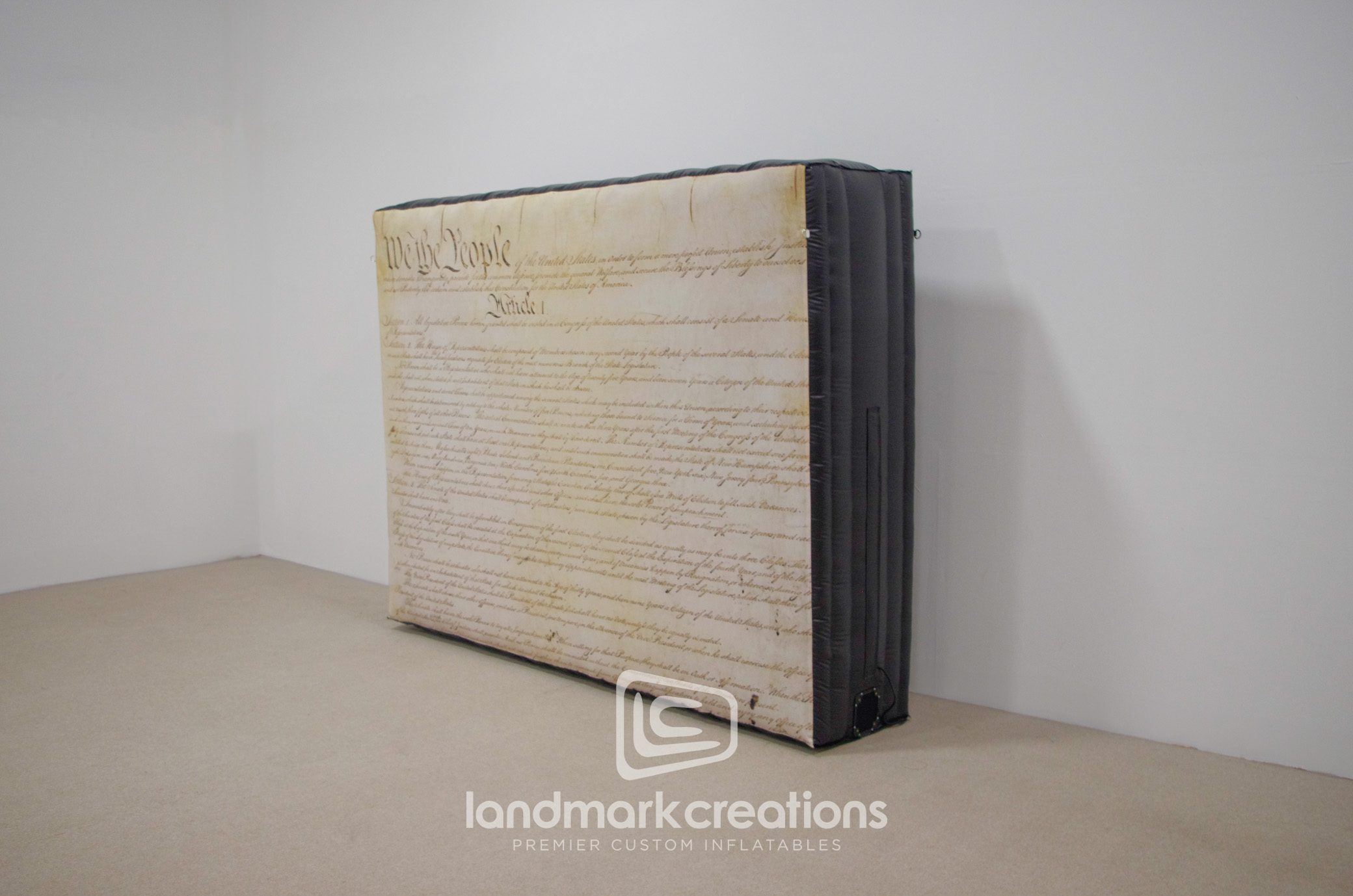 The US Constitution Replica inflatable is a detailed and impressive display designed for civic education and national celebrations. Its grand size and historical accuracy make it a standout attraction at schools, museums, and public events.