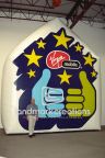 Looking for a creative way to promote your next telecomm marketing tour? Virgin Mobile used this giant inflatable billboard to showcase their thumbs-up logo and attract attention at mobile marketing events.