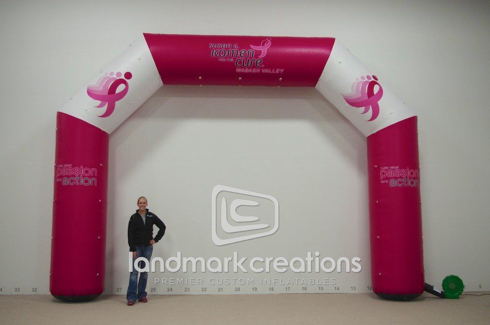 The Susan G. Komen Wabash Valley Chapter welcomed breast cancer survivors and supporters to their Race for the Cure event with this custom inflatable arch. Inflatable arches attract attention and offer a memorable photo opportunity for race participants!