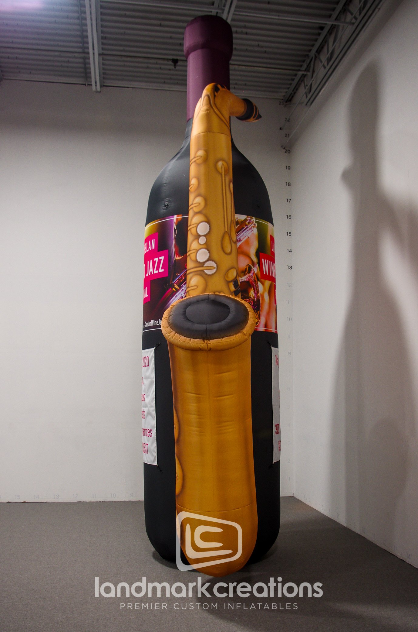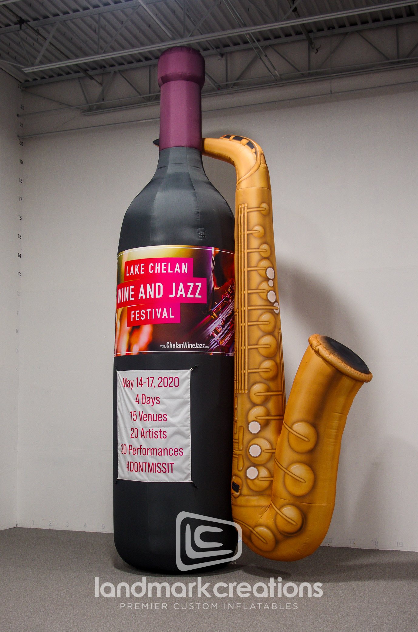 This giant saxophone & wine bottle display is a match made in heaven for jazz festivals with product sponsors. Colorful visuals, like this giant inflatable display, also make perfect photo opps for festival-goers to share on social media, which creates more buzz for the event.