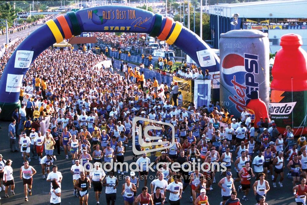 The vivid colors and massive size of this custom built inflatable arch clearly marked the starting line for participants of the 2003 World’s Best 10K in San Juan, Puerto Rico.