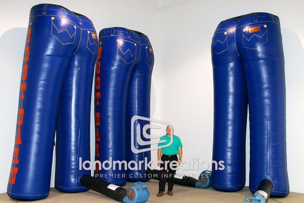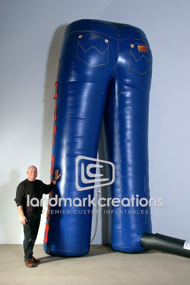 Wrangler Jeans retailer, Boot Barn, inflates these jean replicas to attract traffic and increase sales during retail promotions.