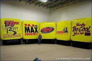 - Inflatable Logos – When marketing an advertising event, planning for exposure is vital. Incorporating giant inflatable logos practically guarantees you'll be seen. The professional designers at Landmark Creations make certain the inflatable version of your logo is an exact match with the real thing.