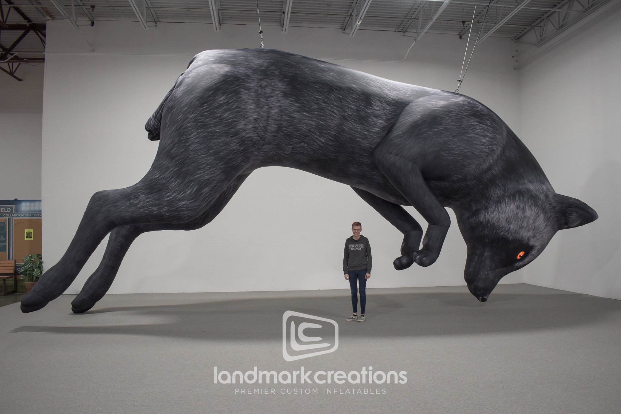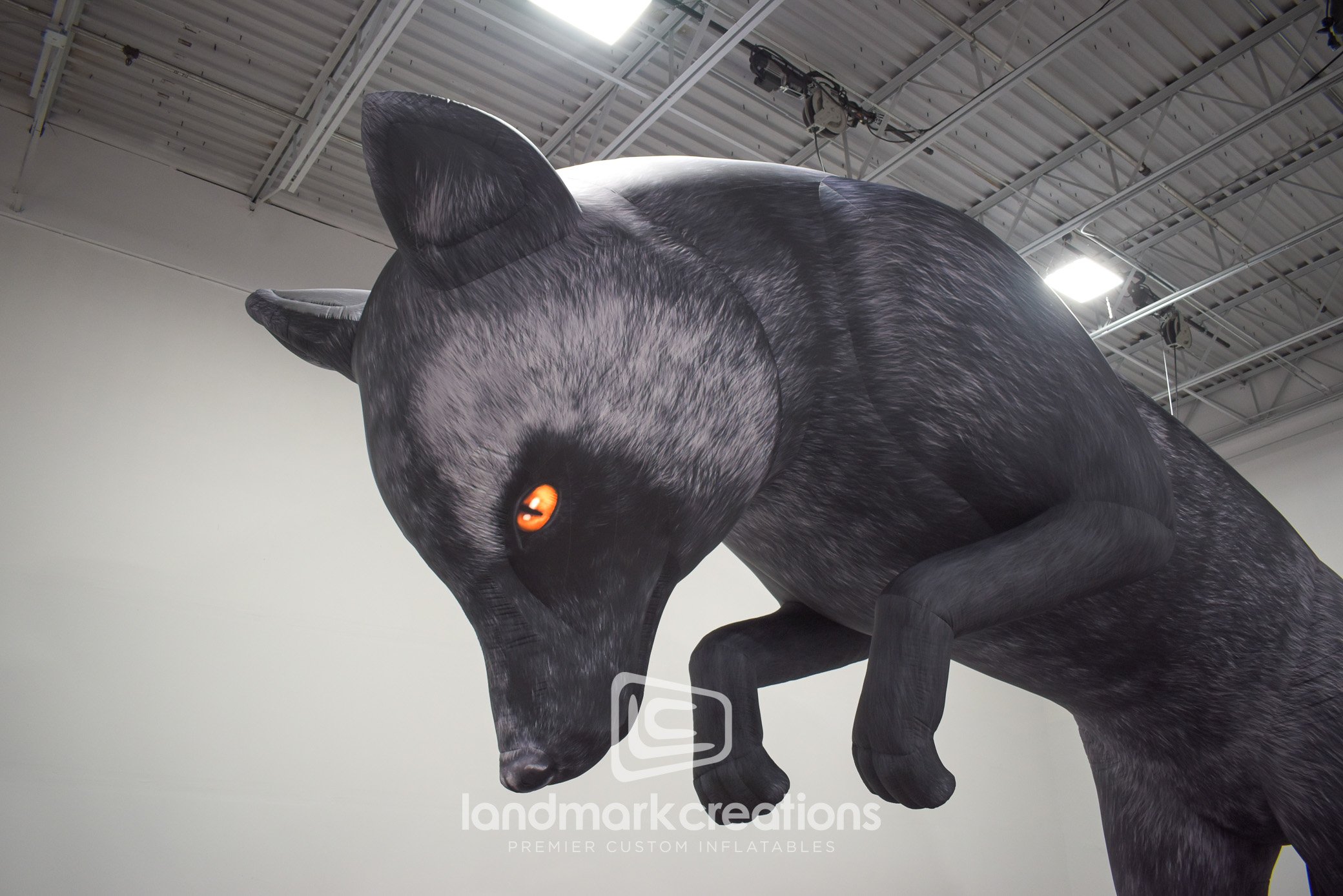 Chinese singer Cai Xuhun "KUN" creates a dramatic effect onstage with this inflatable giant black fox replica. Custom inflatables perform well on tour because they're fast to set-up and pack easily to transport between shows.