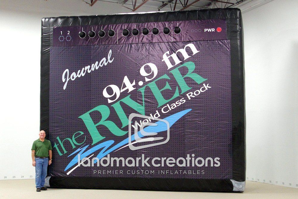 This 17-foot-tall amp replica doubles as a giant billboard for radio station 94.9 fm The River at station remotes and local concerts. Custom inflatables are a great way to start conversations and promote a classic rock station in the community.