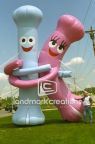 These custom inflatable KIDS letters forming a giant letter "K" have friendly faces to attract attention and connect with children at outdoor events in Japan.