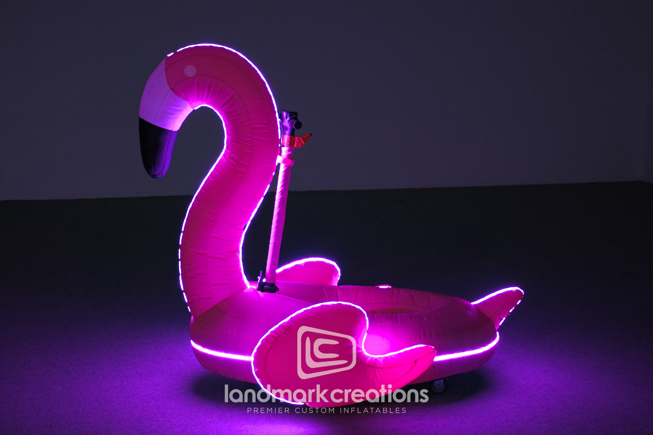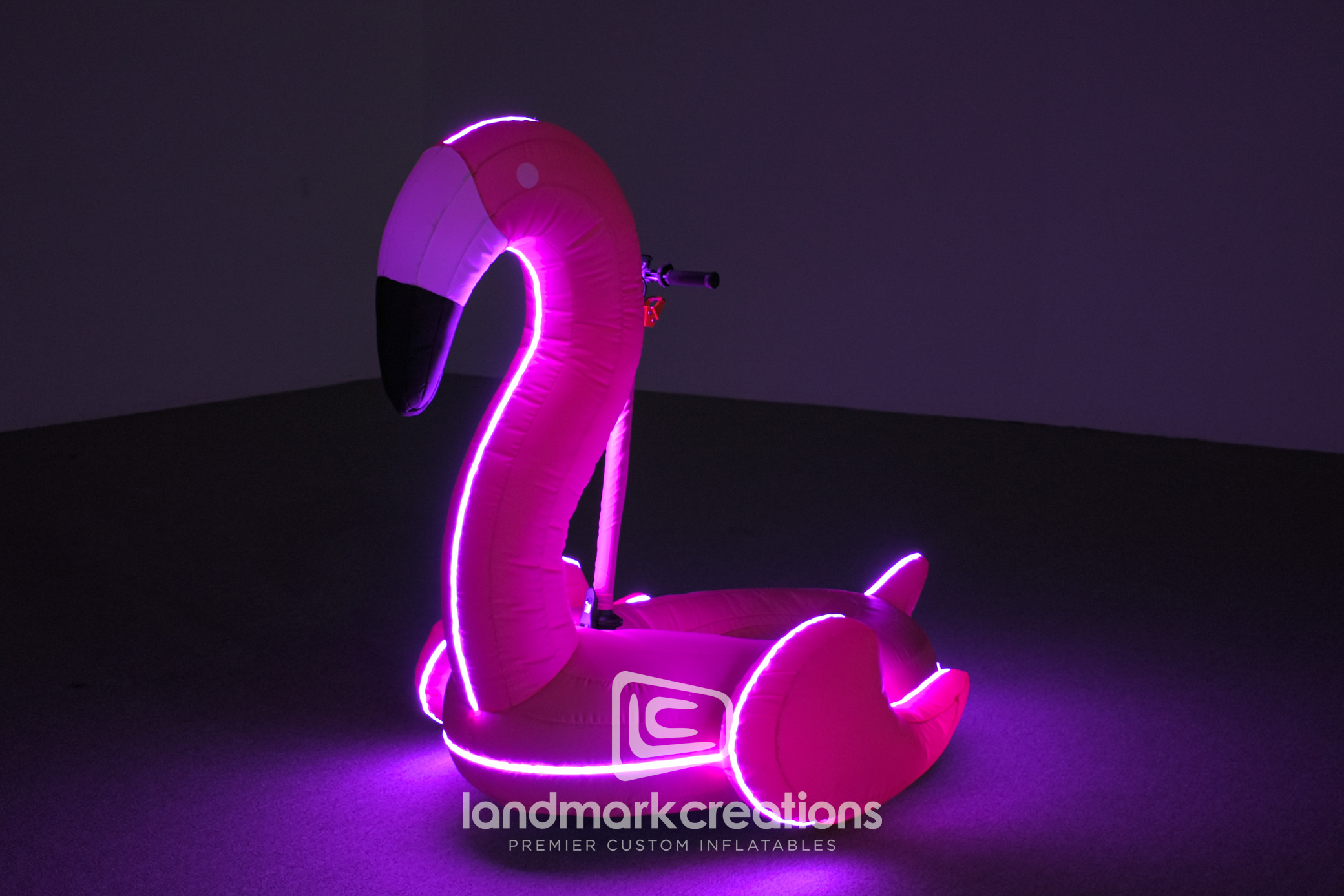 This custom P!nk Flamingo Floatie Scooter Display was designed for Silent House Productions and featured in P!nk’s world tour. With its vibrant colors, wireless operation, and built-in lighting, this inflatable brought a unique, playful element to the stage. Incorporating inflatable displays with integrated features is deal for stage producers seeking visually striking props that enhance live performances.