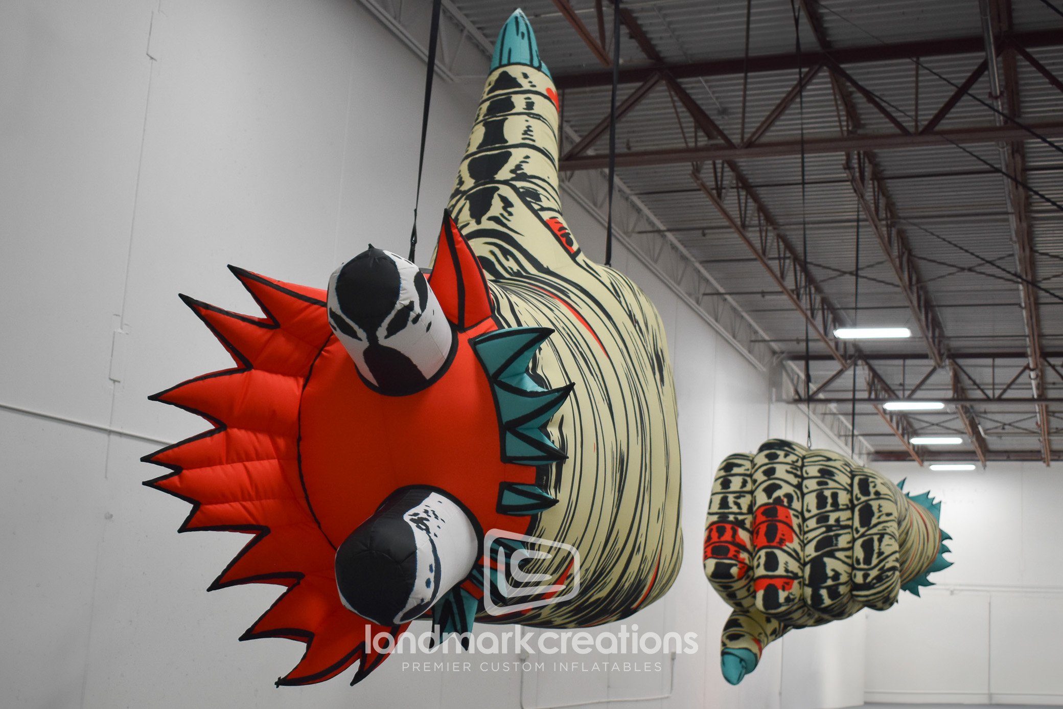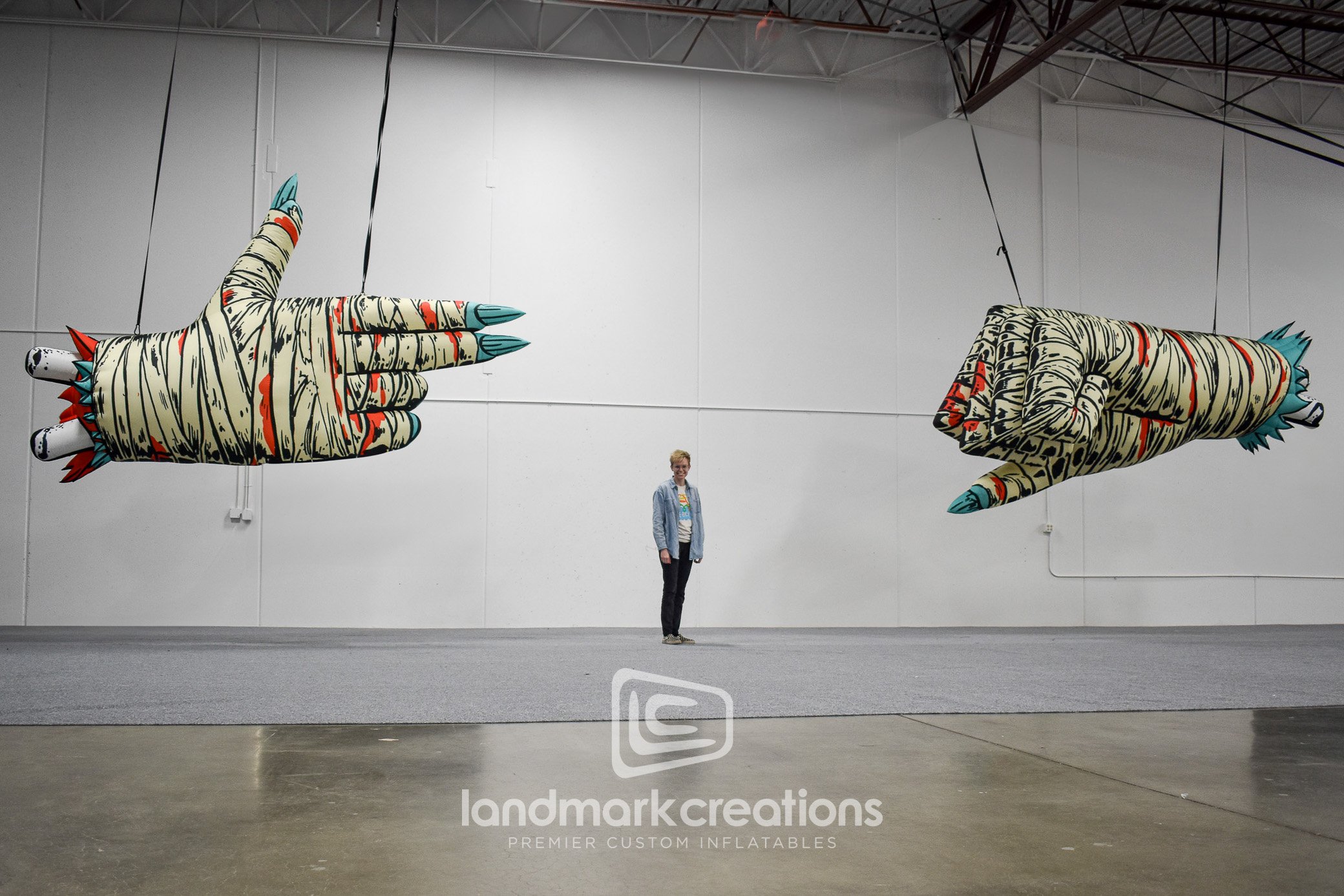 Inflatable Run the Jewels "hand sign" one hand in the shape of a gun and the other a fist symbolizing a stick up, run the jewels. The "hand sign" inflatable was created to be displayed onstage during RTJ's 10th anniversary tour that kicked off in the Fall of 2023. The "hand sign" is iconic to RTJ.