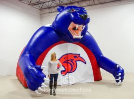 Plymouth State University turned to Landmark Creations to create a custom 20-foot Tunnel Cat Topper inflatable. Designed to captivate fans at sporting events, this innovative inflatable combines a striking torso design with an updated tunnel length of 20 feet, ensuring a bold visual impact. The versatile indoor/outdoor installation showcases updated artwork and a head design inspired by previous successful inflatables. Ideal for enhancing school spirit and creating unforgettable event entrances, this inflatable is a testament to Plymouth State University’s dynamic brand and engaging campus culture.