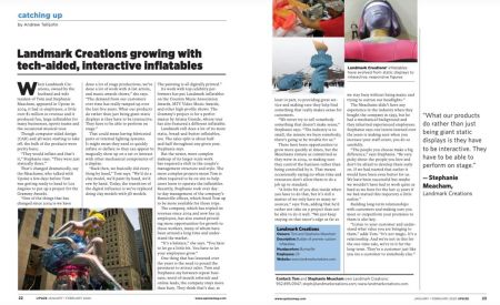 Landmark Creations is frequently invited to be interviewed by newspapers, television shows, magazines, and national trade publications. Educating marketers about the far-reaching benefits of inflatables is one of our favorite things to do. From as long ago as 1997, you'll find Landmark President Tom Meacham proudly representing our U.S.-based firm in print and on video.