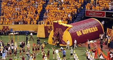 Goldy the gopher was jumping for joy the day the University of Minnesota decided inflatable sports tunnels would be added to their lineup. No doubt, Goldy already knew how valuable inflatables are when it comes to building excitement and increasing fan support. That's one smart gopher!